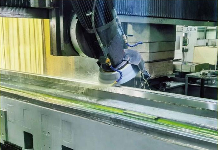 一台RY-GB8550F5五轴桥式龙门加工中心,全行程定位精度为0.03mm,直线度为0.02mm。